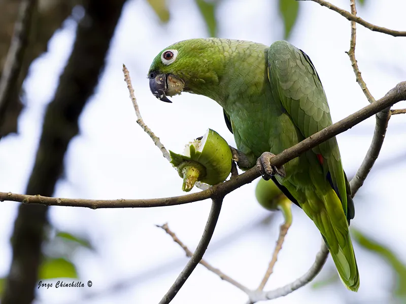 En este árbol había quizás unos 7 ejemplares de este escandalosa especie. La mayoría muy altos pero estas dos si bajaron un poquito.