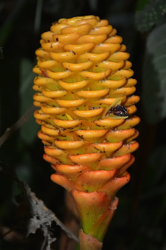 Hola, muchas gracias. Busque información y encontré que, científicamente, sí es Zingiber Spectabile de la familia Zingiberanceae. En algunas partes se les llama el Ginger Shampoo, Ginger Colmena, Ginger Maraca, o simplemente Maraca. El origen se manifiesta que es de Asia, frecuente en paises como Tailandia, Malasia e India. Actualmente en América se puede encontrar en muchos paises. La inflorescencia basal de la planta es la foto que tomé, aunque al verla de lejos, equivocadamente, pensé al principio que era un exótico hongo y supe que no, que era una planta viva e interesante.