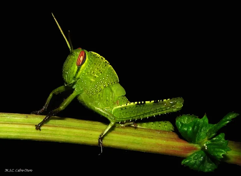 Tiene una nitidez y detallles de lo mejor María, en este caso el fondo negro le viene bien por el color del saltamontes. Saludos