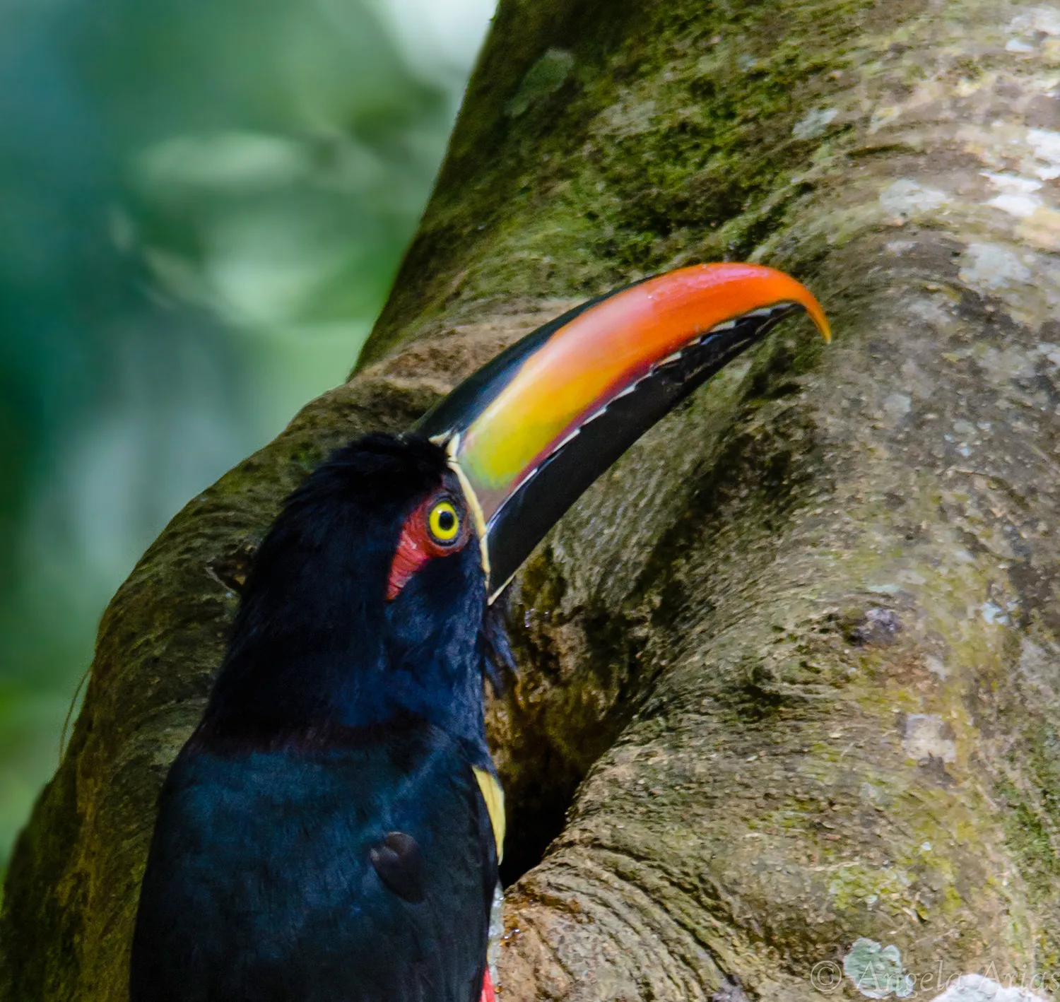 Dos estupendas fotografías Angela que gran nitidez y detalles en este bello tucán. Saludos