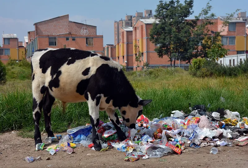 Desastrosa y turbadora alimentación, que le permiten al hambriento bovino, en la urbe capitalina de Colombia.